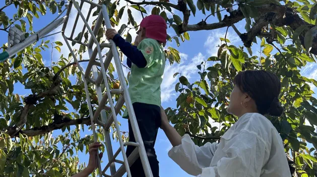 保育園最後の親子遠足です。大きくて甘そうなオレンジ色の柿はあるかな〜?